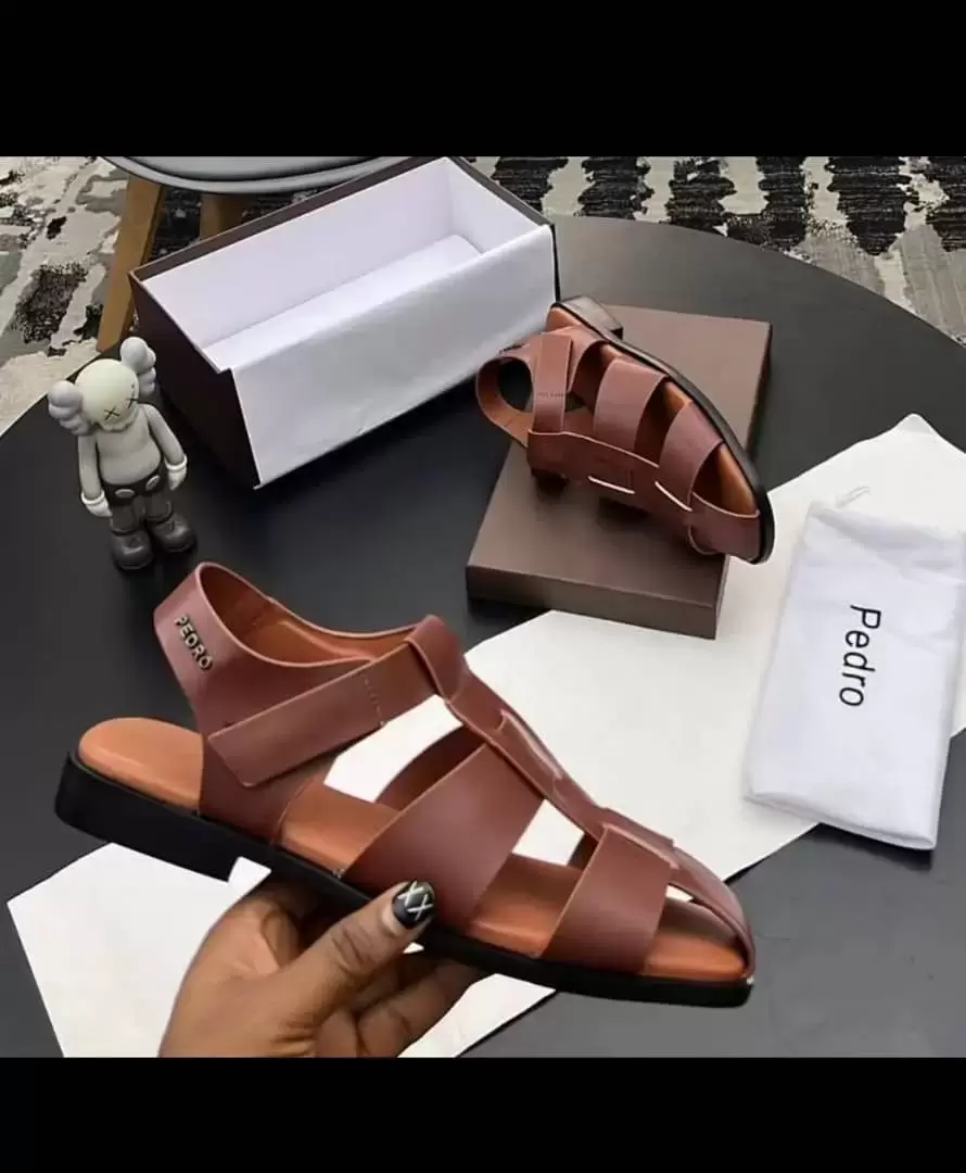 This is a pair of men's sandals with a classic caged design, branded as Pedro.